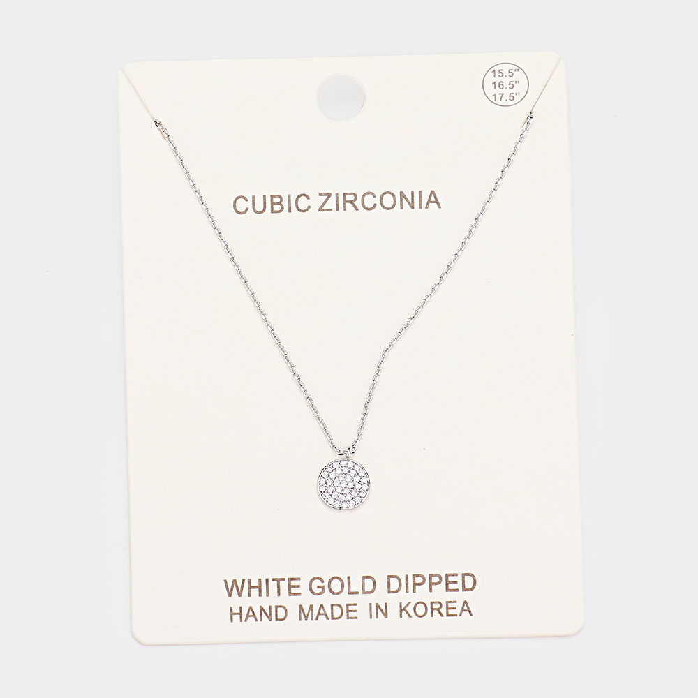 White Gold Dipped Cubic Zirconia Moon Star Pendant Necklace