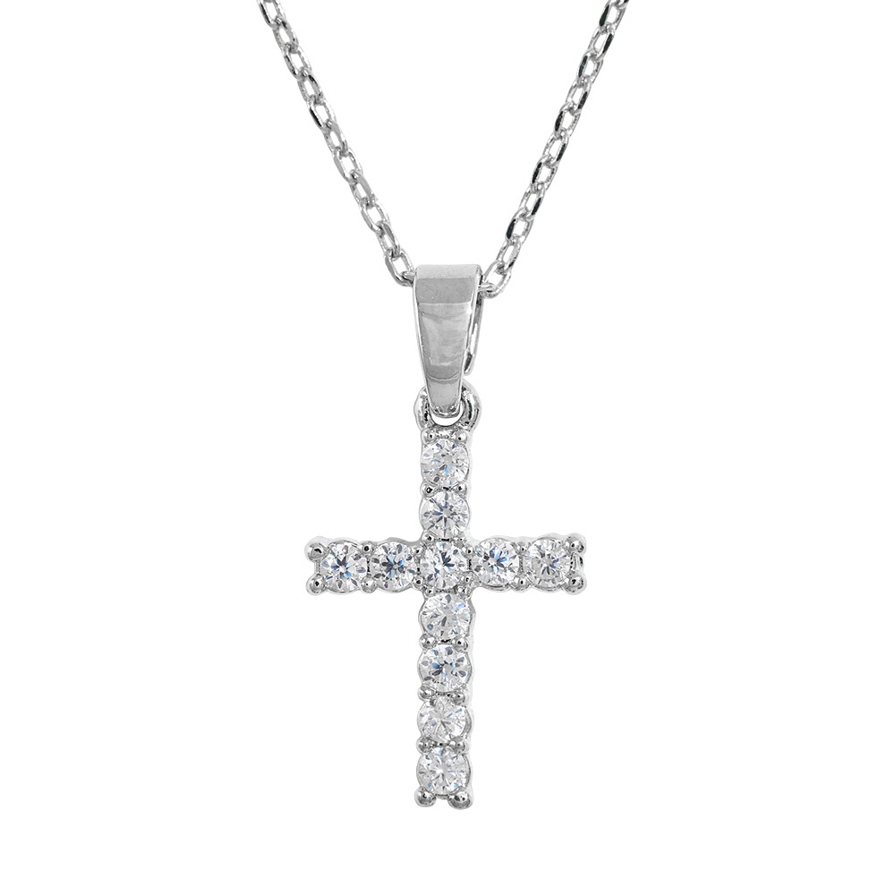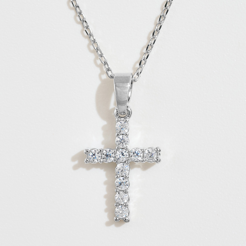 • This radiant cross pendant necklace features a classic design adorned with sparkling stones that capture light from every angle. A timeless symbol of faith and devotion, it makes a meaningful accessory for everyday wear or a heartfelt gift for special occasions.