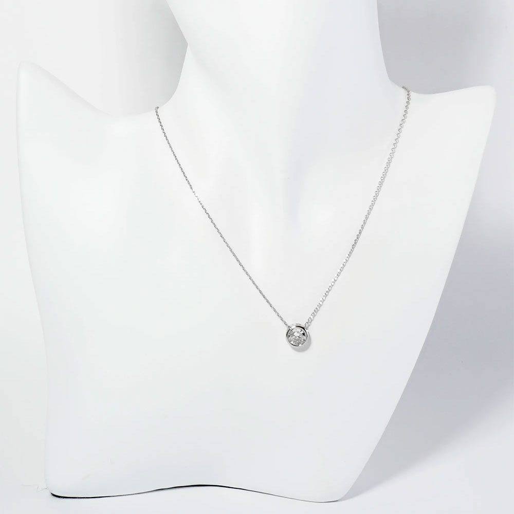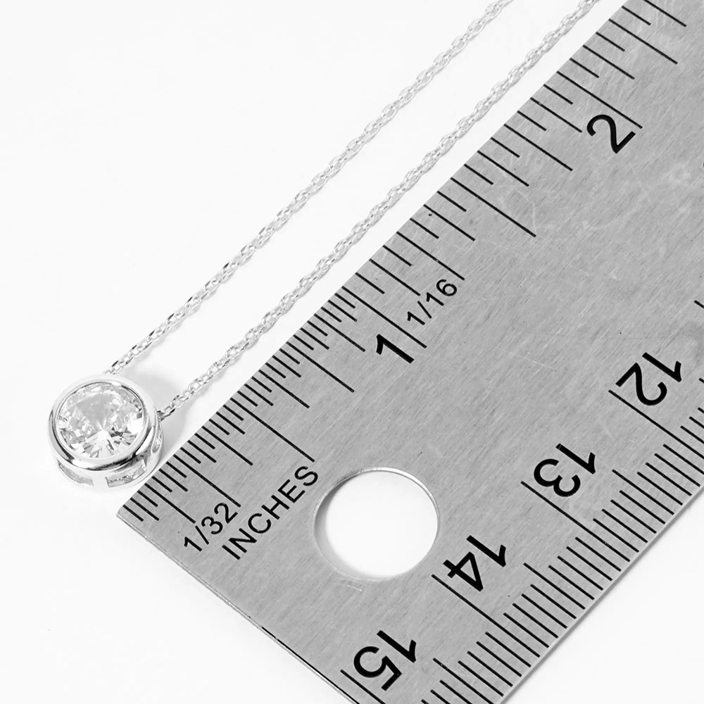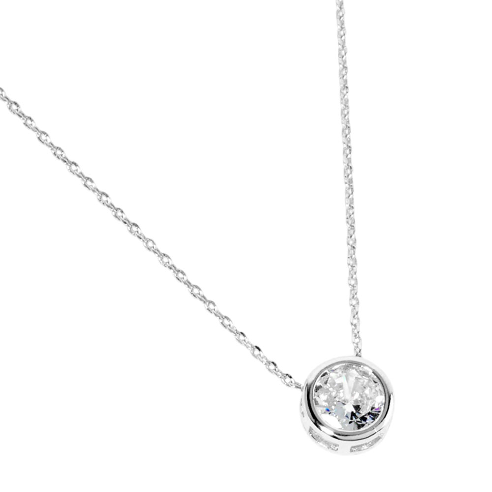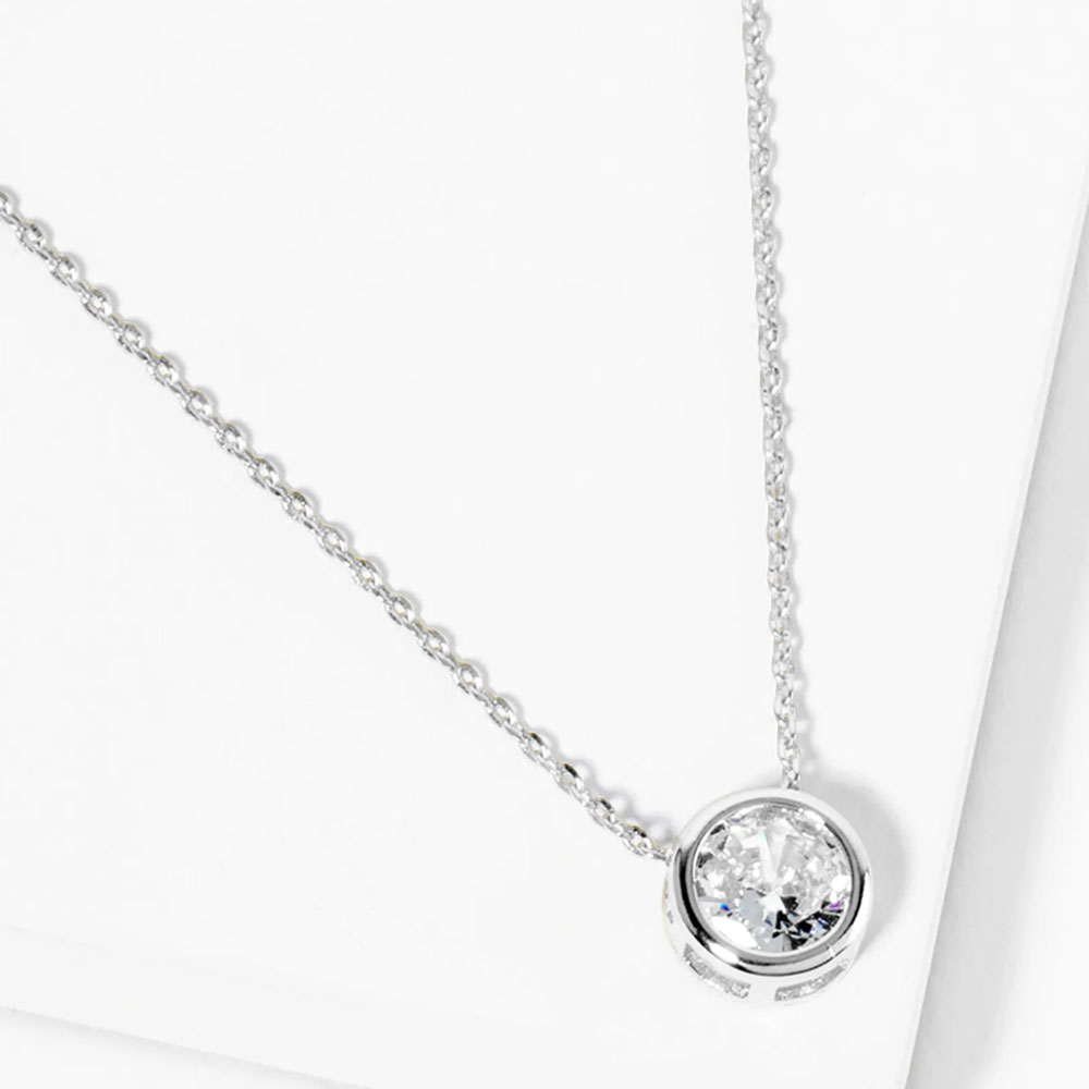 White Gold Dipped Round CZ Stone Bezel Pendant Necklace