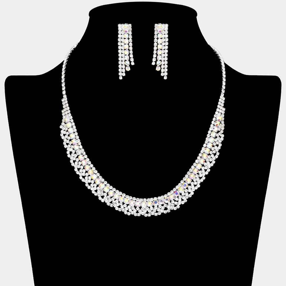 • Dazzle with timeless glamour in this Layered Sparkling Crystal Necklace and Earring Set. Designed with cascading rows of brilliant stones, it adds a luxurious radiance to any outfit—ideal for weddings, evening galas, and festive celebrations that call for effortless sophistication.