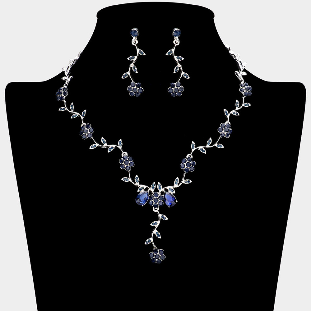 Flower Leaf Cluster Vine Rhinestone Necklace