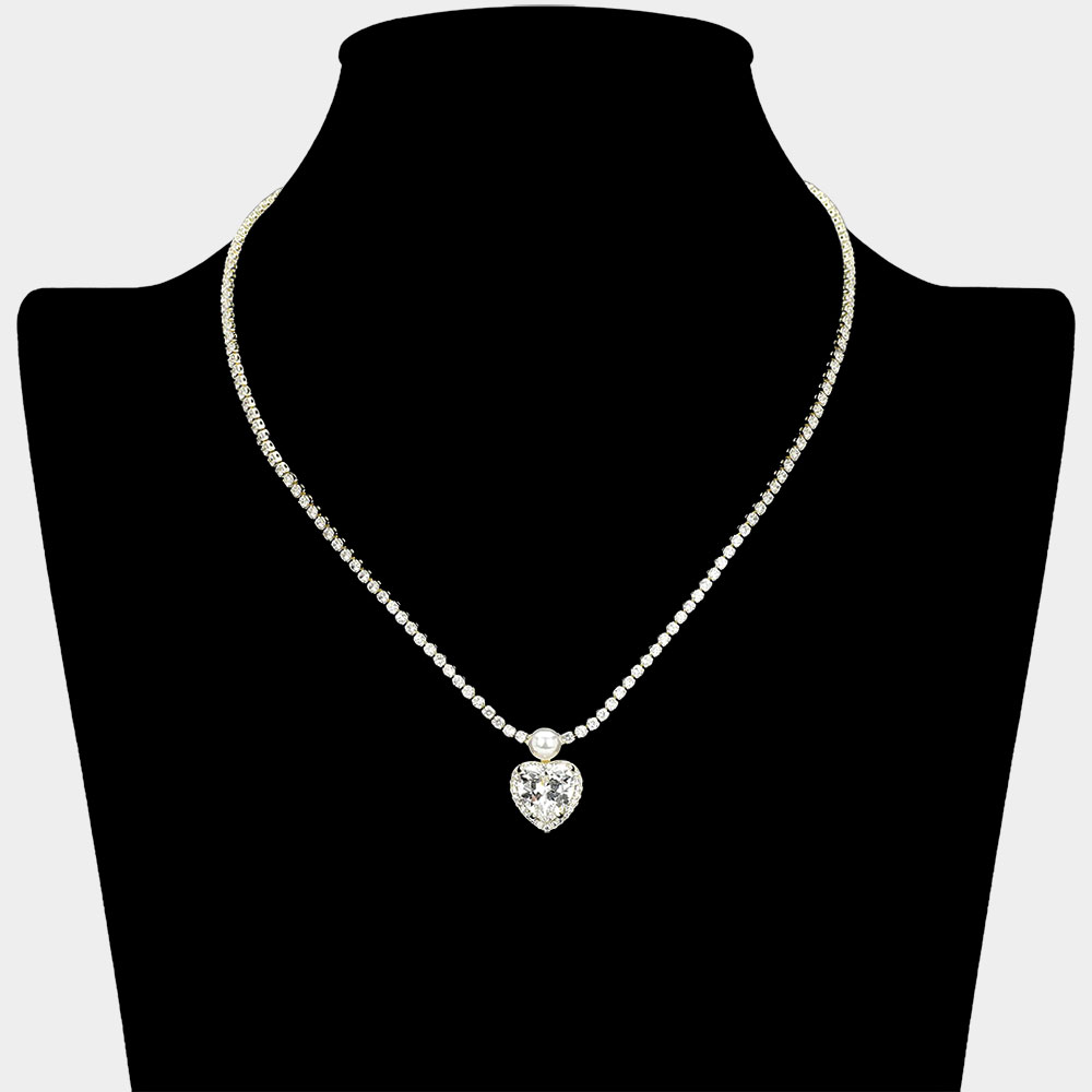 Details • Necklace Size : 16" + 3" L • Decor Size : 0.5" X 0.75" • This elegant heart drop necklace features a sleek, balanced design with a refined center accent that adds subtle sparkle to any look. Ideal for formal occasions, romantic styling, bridal wear, or boutique jewelry collections, it offers timeless appeal with versatile, polished elegance. • Brass • CZ Cubic Zirconia