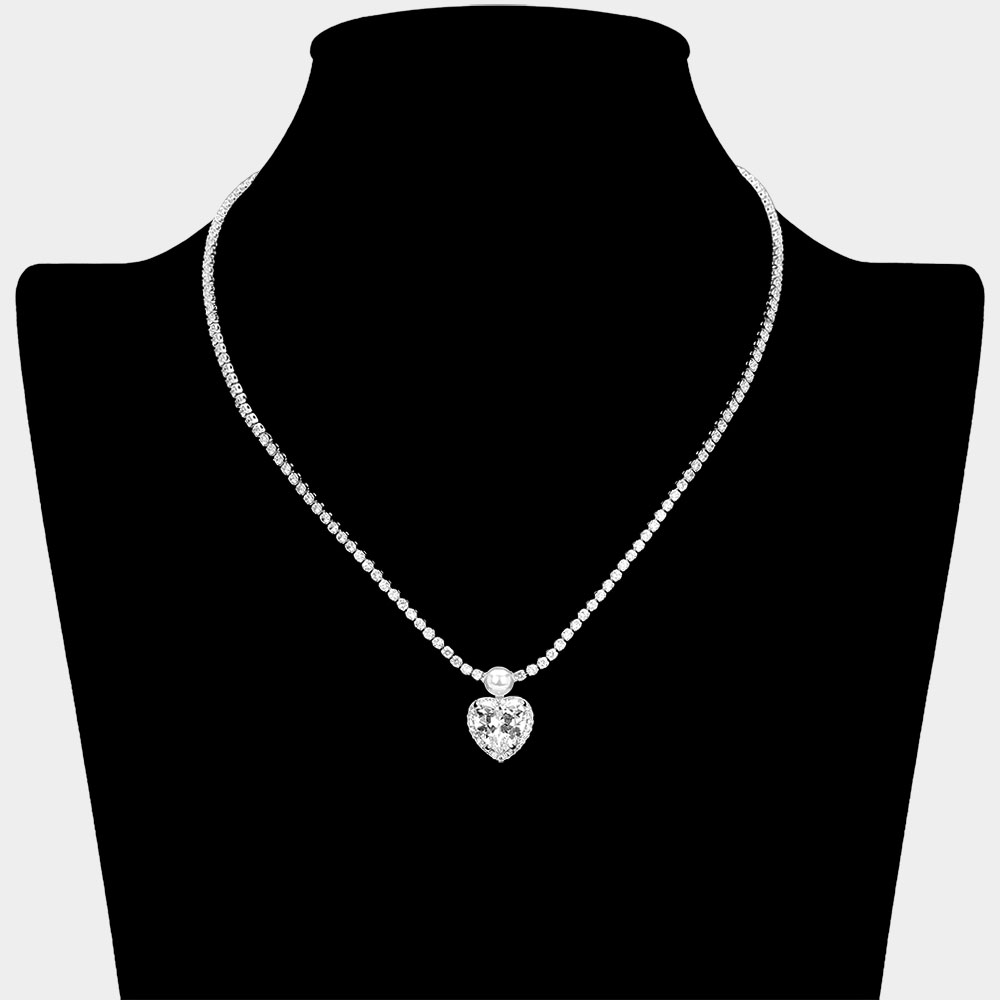 Heart CZ Stone Charm Drop Rhinestone Necklace