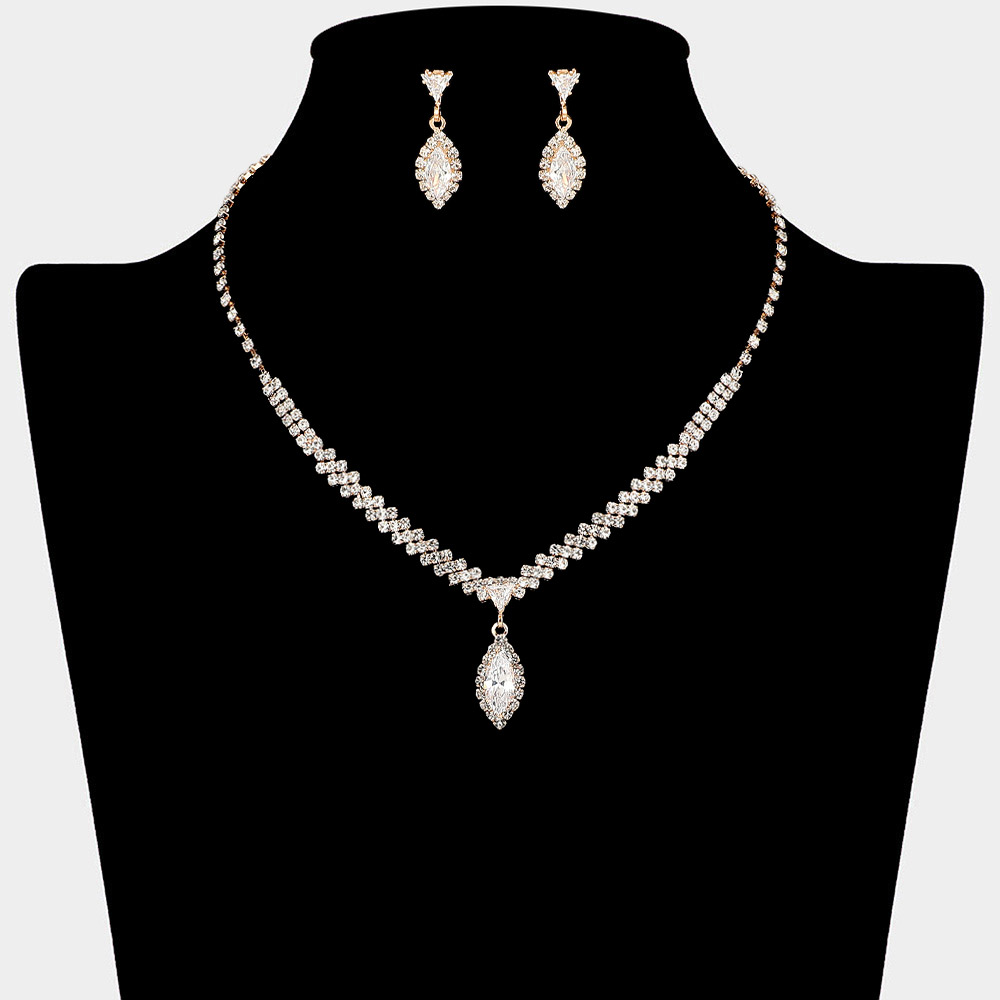 Marquise Rhinestone Trim Oval Dangle Necklace Jewelry Set