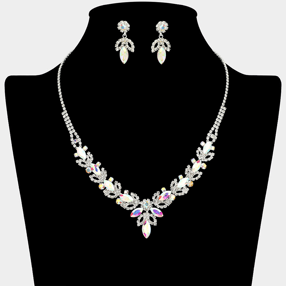 • This statement necklace and matching earring set showcases cascading leaf and drop details in a symmetrical design that frames the neckline beautifully. Ideal for weddings, formal events, evening wear, and special occasions, it delivers refined sparkle and a polished finish to elevated looks.