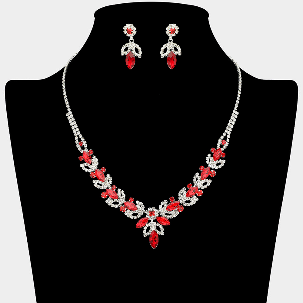 • This statement necklace and matching earring set showcases cascading leaf and drop details in a symmetrical design that frames the neckline beautifully. Ideal for weddings, formal events, evening wear, and special occasions, it delivers refined sparkle and a polished finish to elevated looks.