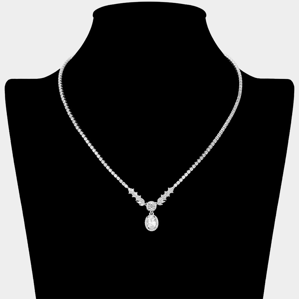 Oval CZ Stone Charm Drop Rhinestone Necklace