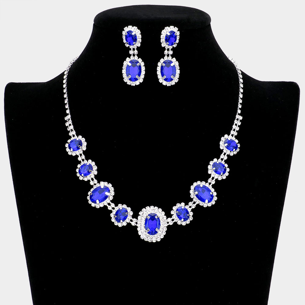 Oval Stone Accented Rhinestone Trimmed Necklace