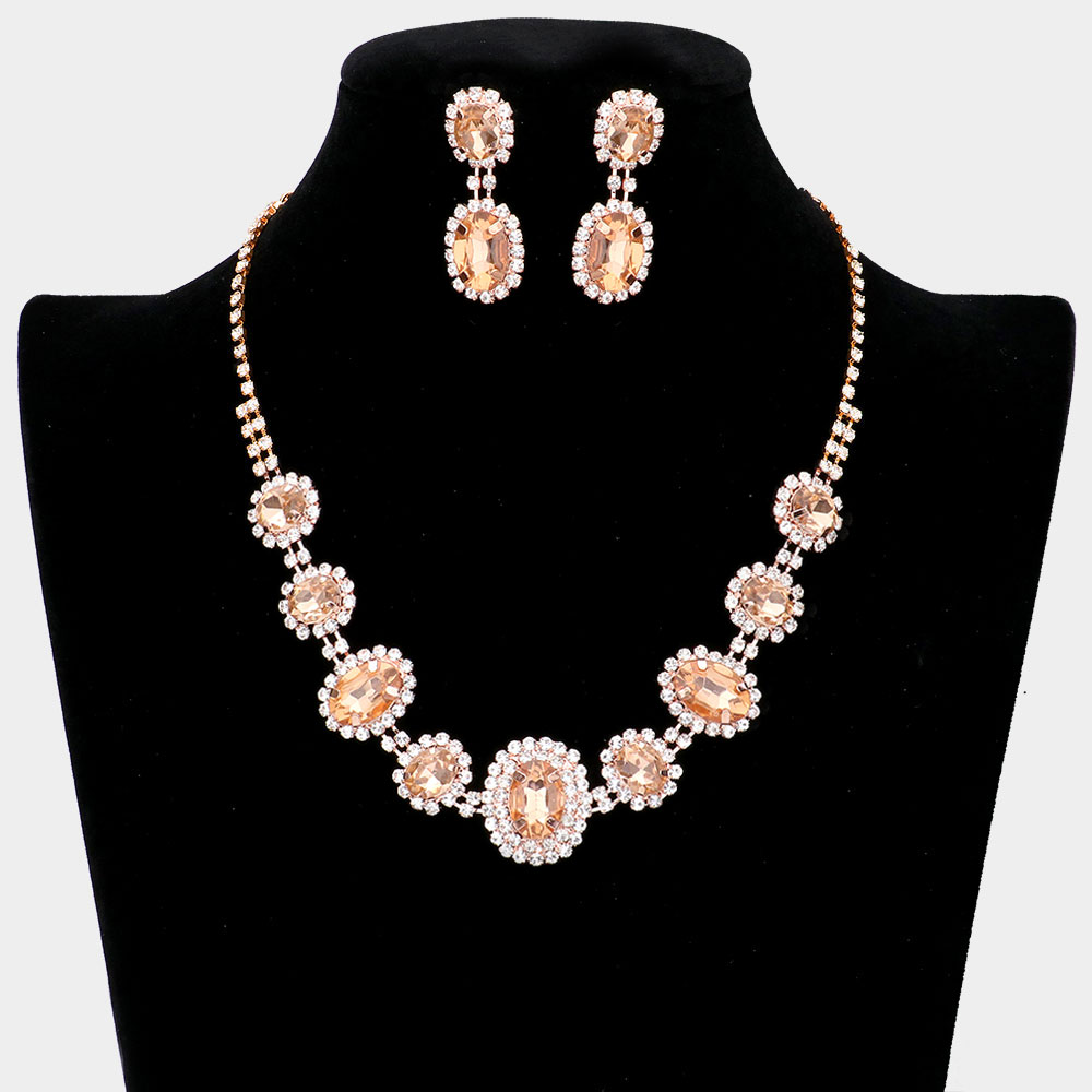 Oval Stone Accented Rhinestone Trimmed Necklace