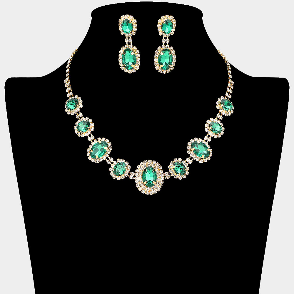 Oval Stone Accented Rhinestone Trimmed Necklace