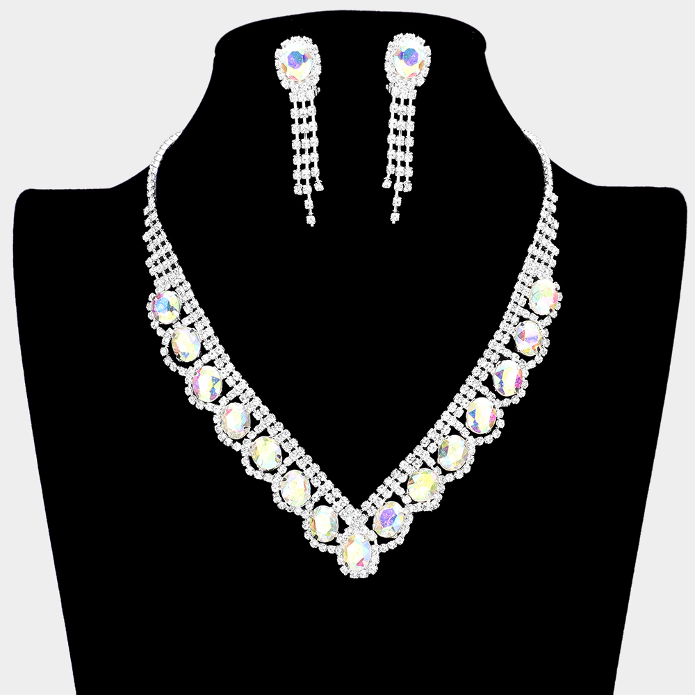 Oval Stone Accented V Shaped Rhinestone Necklace Clip on Earring Set Oval Stone Accented V Shaped Rhinestone Necklace Clip on Earring Set Oval Stone Accented V Shaped Rhinestone Necklace Clip on Earring Set