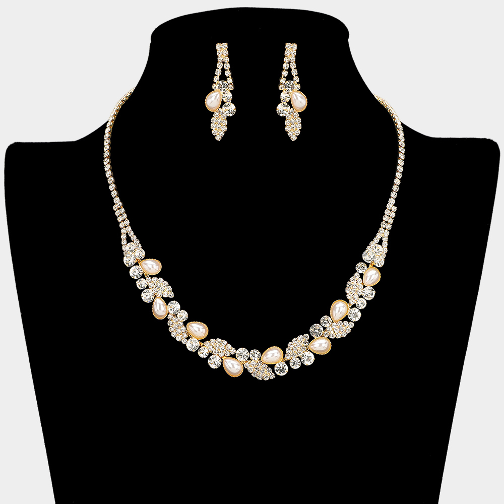 Details • Necklace Size : 15.75" + 4" L • Decor Size : 0.5" L • Earrings Size : 1.5" L • Complete your formal look with this stunning jewelry set featuring shimmering stones and elegant pearl-like accents. Designed to enhance evening gowns and special occasion outfits, it offers a graceful sparkle and timeless sophistication that adds a polished, refined finish to any ensemble. • Lead and Nickel Compliant