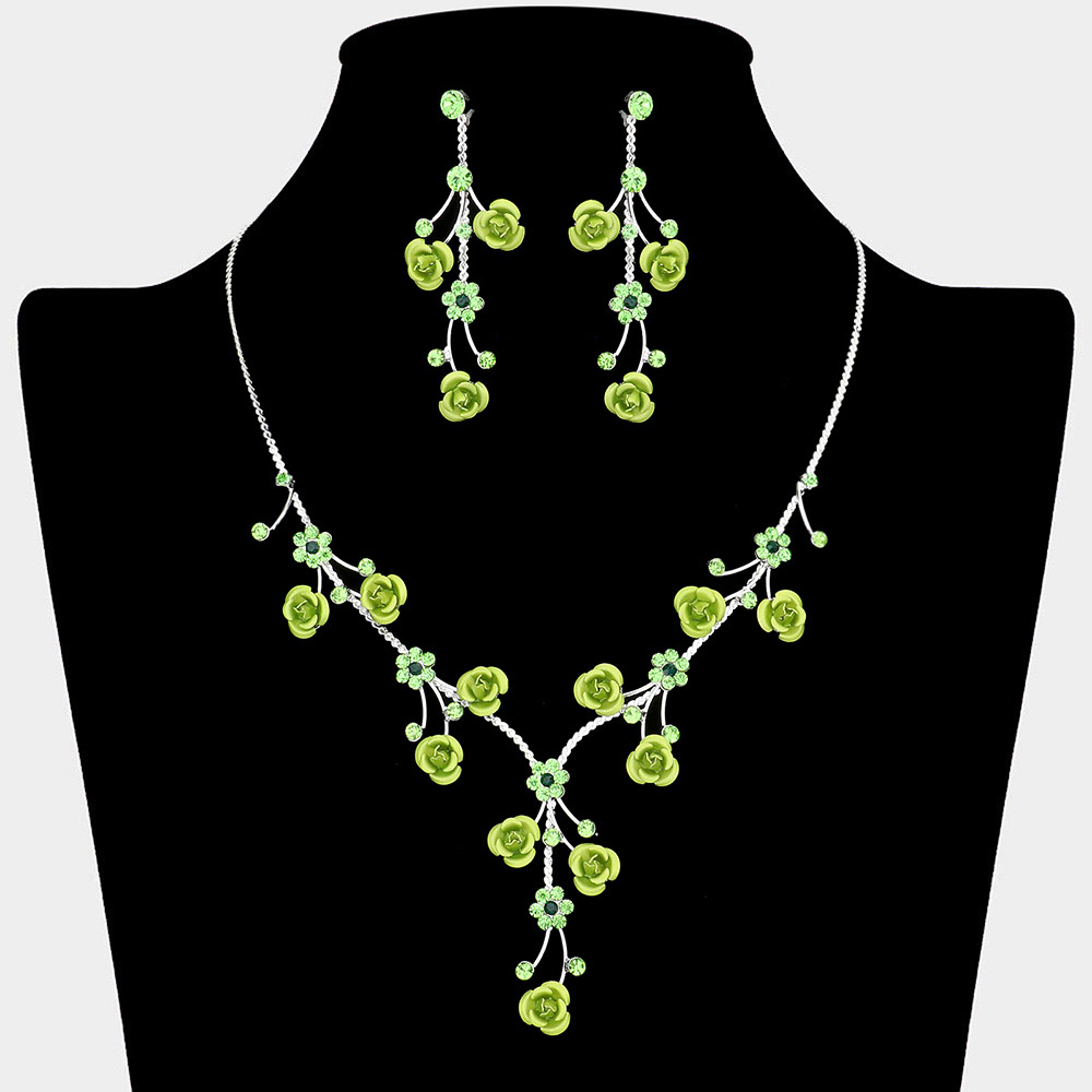 • Elevate your look with this elegant floral necklace and earring set. Featuring delicate flower accents and a graceful design, this jewelry set adds a refined charm to both special occasions and everyday wear, making it a must-have accessory for timeless sophistication.
