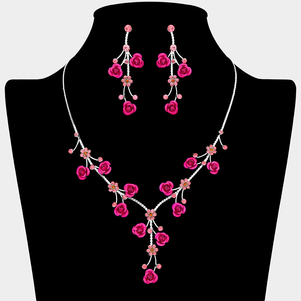 • Elevate your look with this elegant floral necklace and earring set. Featuring delicate flower accents and a graceful design, this jewelry set adds a refined charm to both special occasions and everyday wear, making it a must-have accessory for timeless sophistication.