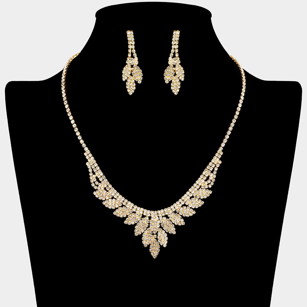 • Shine with refined elegance in this crystal leaf necklace and earring set. Designed with intricate leaf patterns and brilliant stones, it brings a graceful sparkle to any look. Perfect for weddings, parties, or formal occasions, this set adds timeless sophistication and charm.