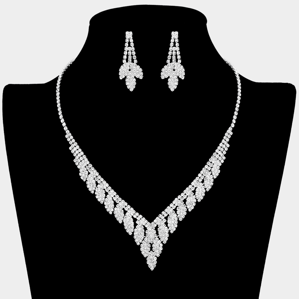 • Shimmer with confidence in this stunning V-shape jewelry set featuring a cascading rhinestone necklace and matching drop earrings. Designed to catch every glimmer of light, this elegant set adds a refined finish to evening gowns, weddings, special occasions, and glamorous celebrations.