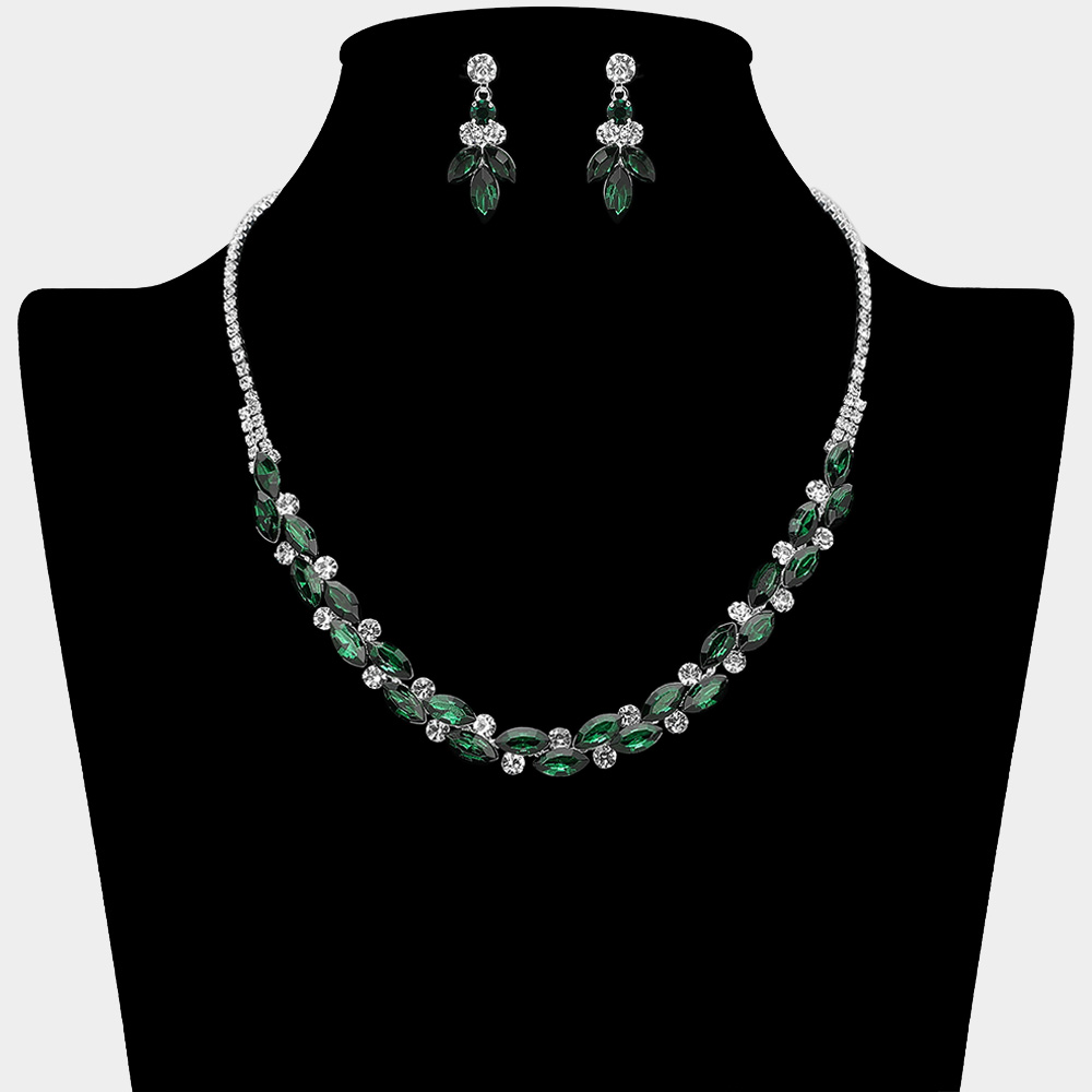 Details • Necklace Size : 16" + 4" L • Decor Size : 0.3" L • Earring Size : 1.25" L • Enhance your elegance with this sparkling crystal necklace and matching earrings set. Featuring marquise-cut stones in a delicate floral design, it’s perfect for weddings, proms, and special occasions. A timeless accessory that adds glamour and sophistication, making it an ideal gift choice.