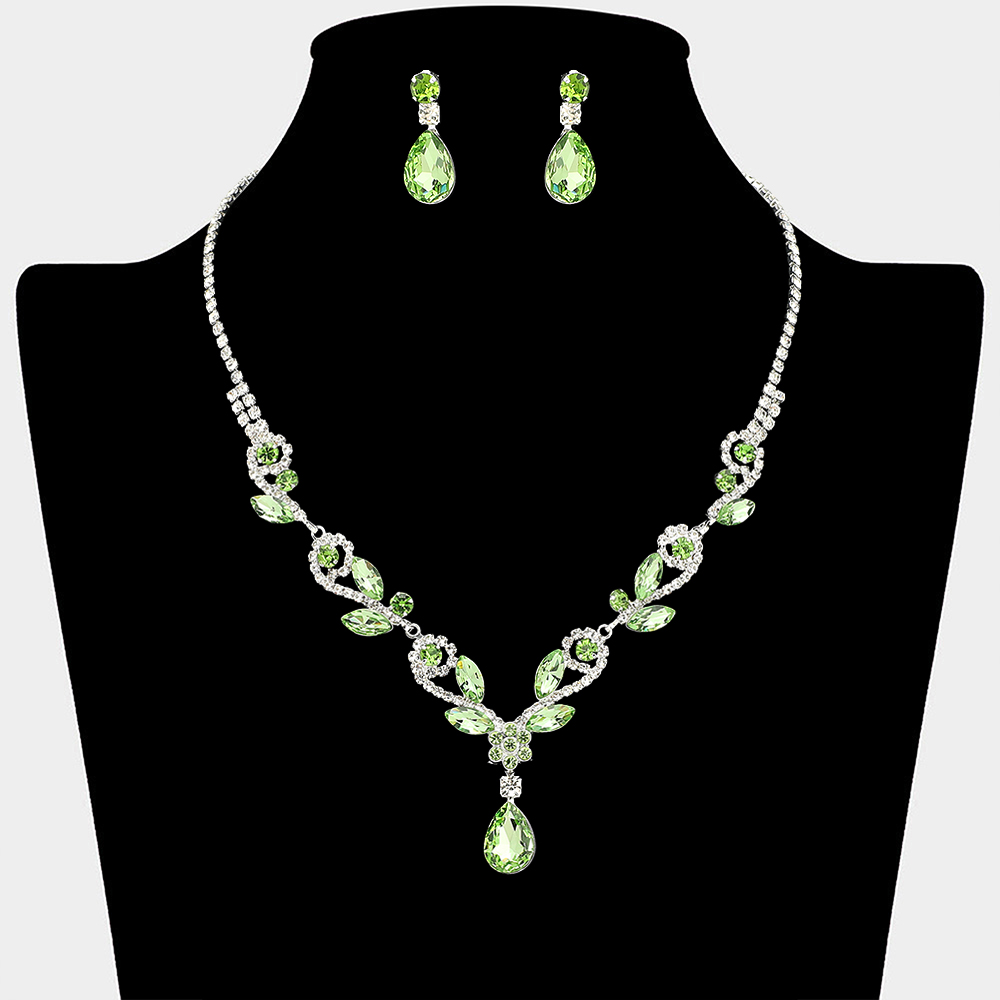 • This elegant necklace and matching earring set features a graceful teardrop design with layered crystal details that highlight the neckline beautifully. Ideal for weddings, formal events, proms, and evening occasions, it delivers timeless elegance and eye-catching sparkle for special celebrations.