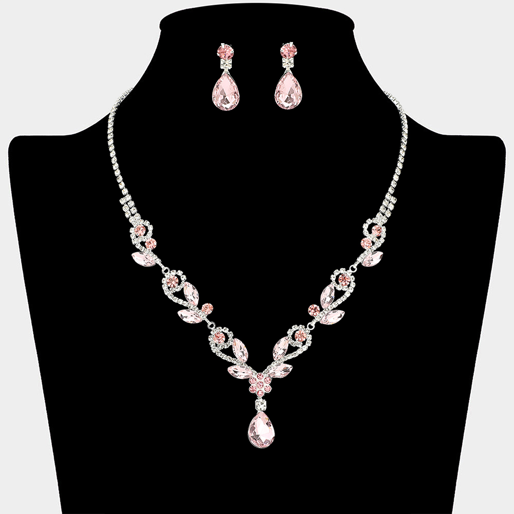 • This elegant necklace and matching earring set features a graceful teardrop design with layered crystal details that highlight the neckline beautifully. Ideal for weddings, formal events, proms, and evening occasions, it delivers timeless elegance and eye-catching sparkle for special celebrations.