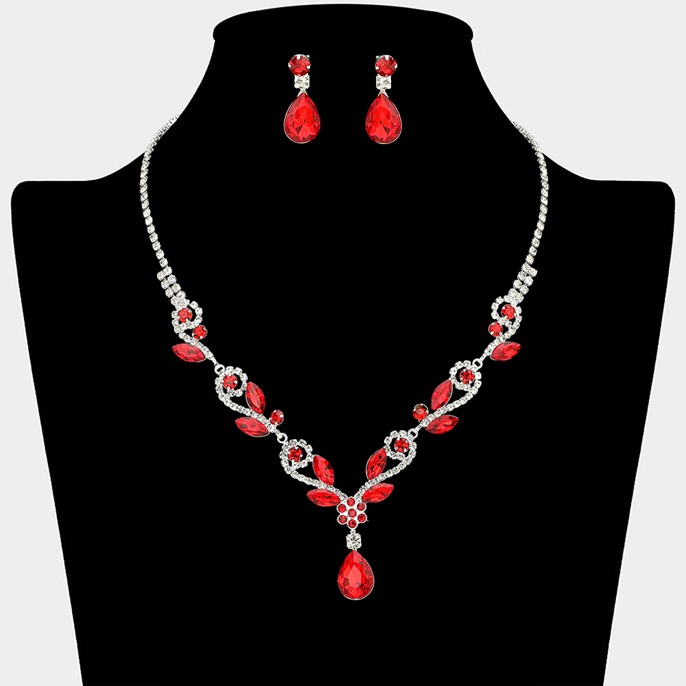 Details • Necklace Size : 16" + 4.5" L • Decor Size : 1.24" L • Earrings Size : 1" L • This elegant necklace and matching earring set features a graceful teardrop design with layered crystal details that highlight the neckline beautifully. Ideal for weddings, formal events, proms, and evening occasions, it delivers timeless elegance and eye-catching sparkle for special celebrations.