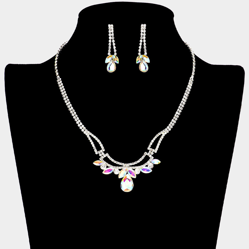 Details • Necklace Size : 15" + 4" L • Decor Size : 0.8" L • Earring Size : 1.4" L • Elevate your look with this rhinestone teardrop necklace and matching earrings set. Featuring shimmering accents and a delicate drop design, this jewelry set is perfect for weddings, proms, and elegant occasions, adding a dazzling touch of sparkle to complete your special event outfit. • Lead and Nickel Compliant