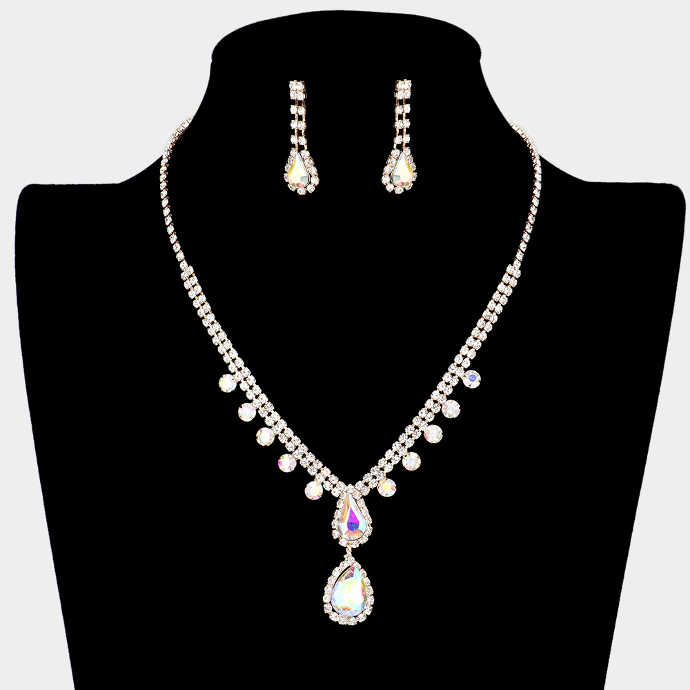 Details • Necklace Size : 15.25" L + 4" L • Decor Size : 1.5" L • Earring Size : 1.25" L • Elevate your style with this rhinestone teardrop necklace and earrings set, perfect for weddings, proms, and evening events. Featuring a dazzling drop design with sparkling details, this jewelry set adds glamour and sophistication, making it the ideal accessory for special celebrations. • Lead and Nickel Compliant