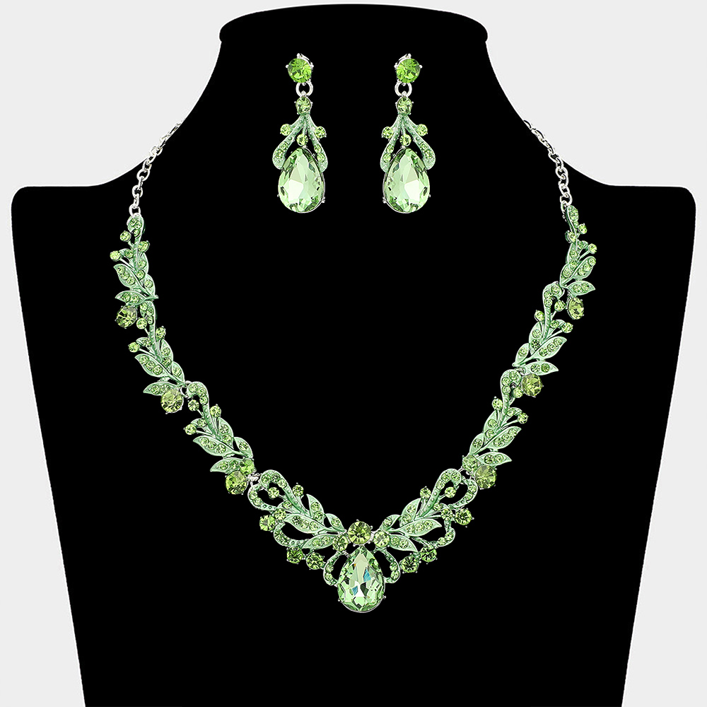 • Elevate special occasion styling with this elegant necklace and earring set designed with graceful teardrop accents and detailed patterns. Ideal for weddings, formal events, proms, and evening wear, this coordinated set adds refined sparkle and timeless sophistication to any dress or gown.