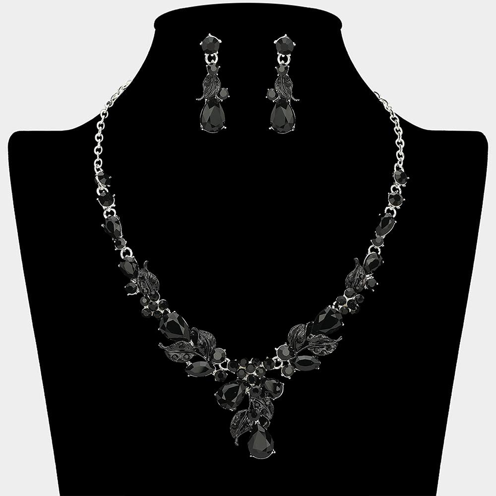 Teardrop Stone Cluster Leaf Embellished Necklace