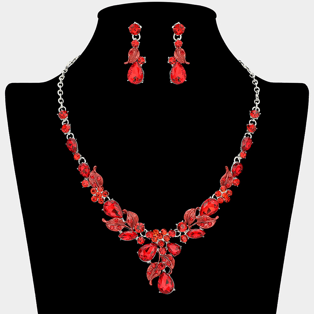 Teardrop Stone Cluster Leaf Embellished Necklace