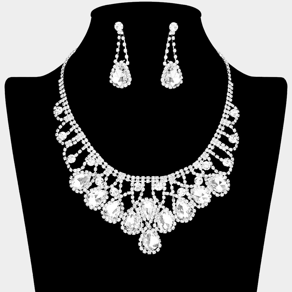 Teardrop Stone Embellished Rhinestone Paved Collar Necklace