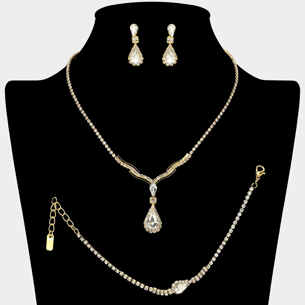 Teardrop Stone Pendant Accent Rhinestone Paved Jewelry Set