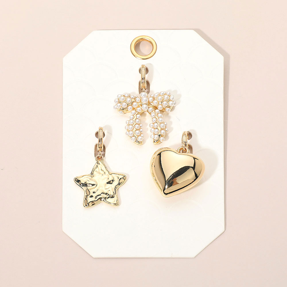 Details • Size : 1.7" L • Enhance your favorite bracelets or necklaces with this timeless pendant charm set featuring a chic bow, modern star, and classic heart design. Perfect for customizing everyday looks or gifting, each charm adds a touch of personality and style to your accessories. Ideal for collectors and jewelry lovers. • Lead and Nickel Compliant