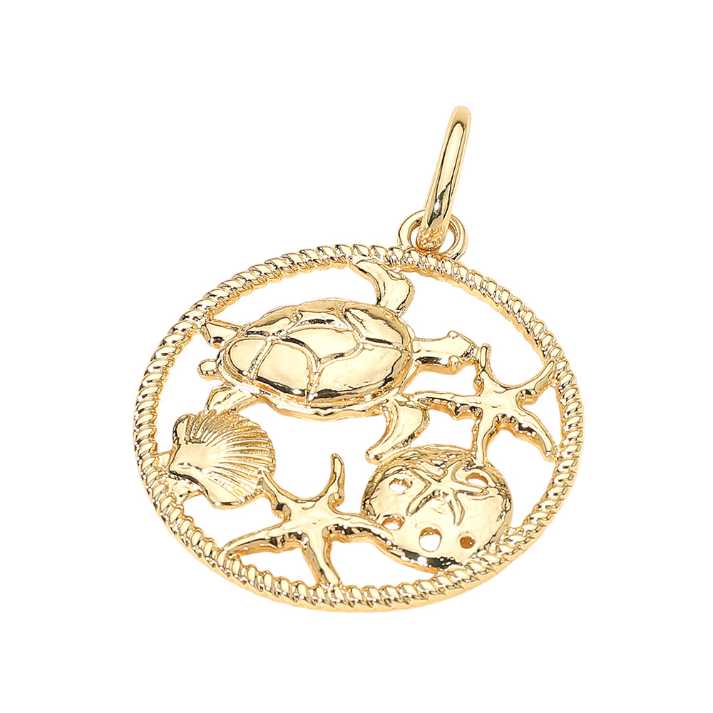 Details • Size : 2" X 2.1", 2.7" L • This ocean-inspired pendant charm features a beautifully detailed design showcasing a turtle, starfish, and seashell within an elegant circular frame. Perfect for beach lovers, it adds a touch of coastal charm and serenity to any jewelry piece, celebrating nature’s underwater beauty. • Lead and Nickel Compliant