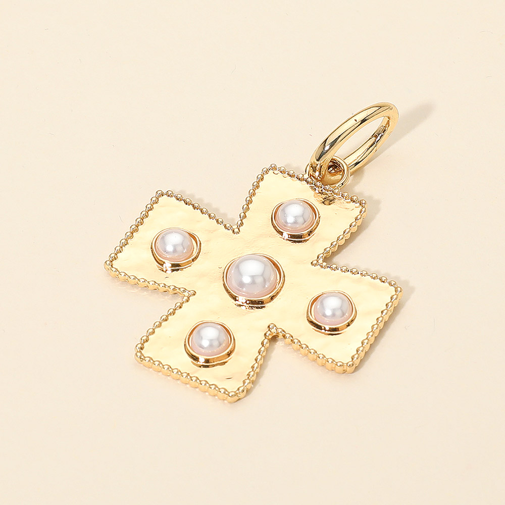 Details • Size : 1.75" X 2", 2.5" L • This elegant cross pendant charm features a refined design adorned with lustrous pearl-like accents, creating a timeless symbol of grace and faith. Its intricate beaded edges and polished finish make it a standout piece for necklaces or bracelets, perfect for meaningful, everyday elegance. • Lead and Nickel Compliant