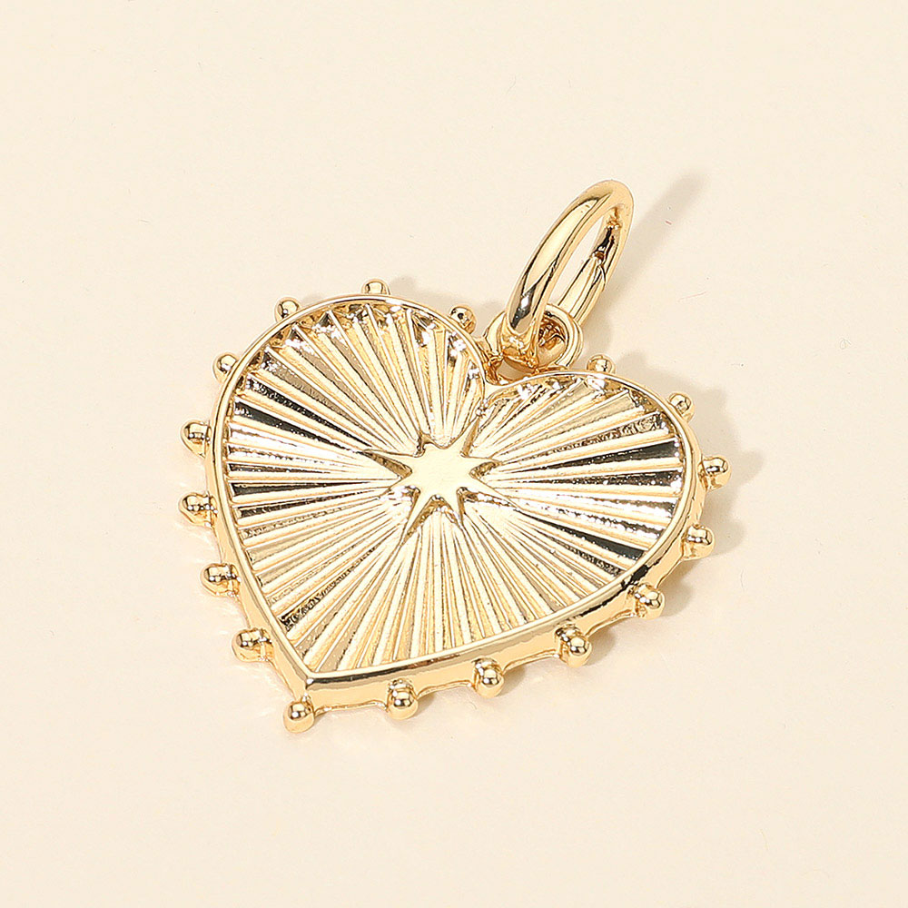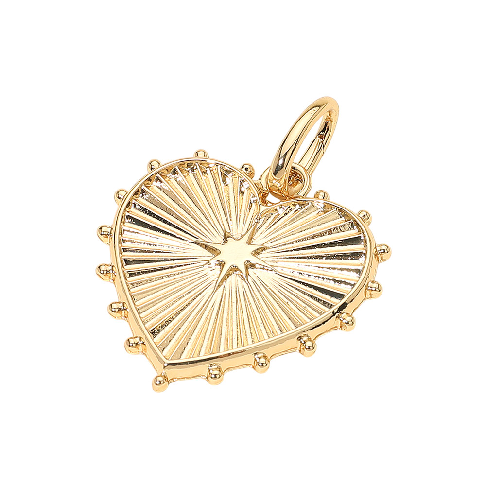 Details • Size : 1.75" X 1.75", 2.25" L • This radiant heart pendant charm showcases a stunning starburst design that symbolizes light, love, and positivity. With its elegant detailing and timeless shape, it adds a touch of brilliance to any necklace or bracelet, making it a perfect piece for daily wear or heartfelt gifting. • Lead and Nickel Compliant