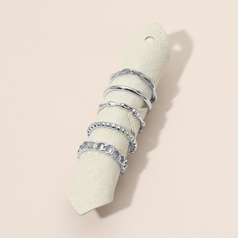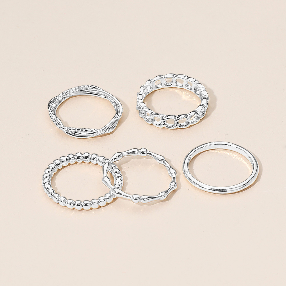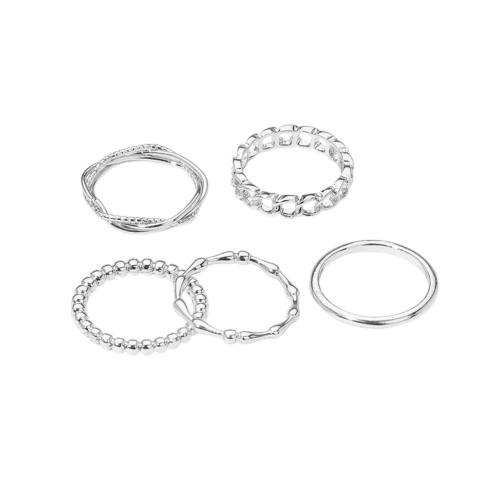 Details • Size : 0.1" - 0.2" H • Elevate your style with this chic multi-band stackable ring set featuring a mix of smooth, textured, and chain-inspired designs. Perfect for versatile wear, these rings can be layered together or worn individually for a sophisticated and trendy statement look. • Lead and Nickel Compliant