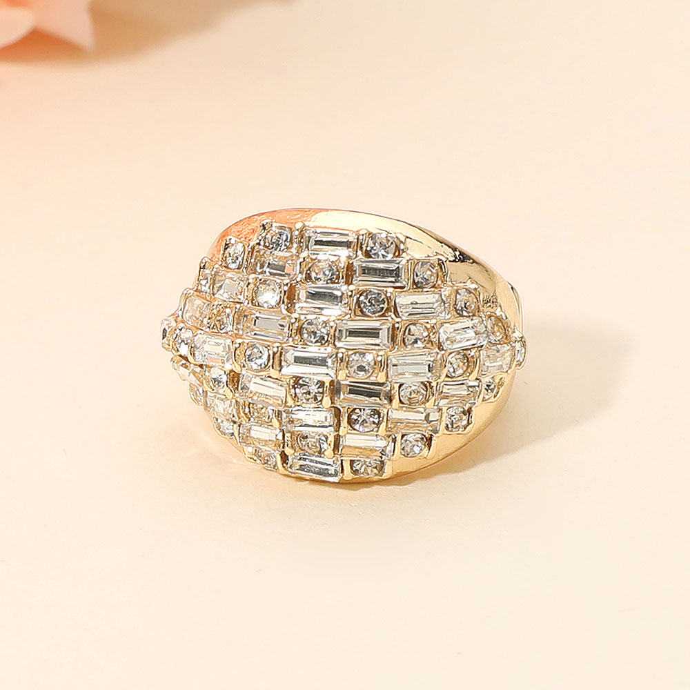 Details • Size : 0.8" H • Stretchable • This checkered crystal statement ring features a bold grid pattern with alternating shimmering stones that create a striking visual contrast. Designed for confident, trend-forward style, it adds instant sophistication and sparkle to any outfit, from elegant eveningwear to modern casual looks. • Lead and Nickel Compliant