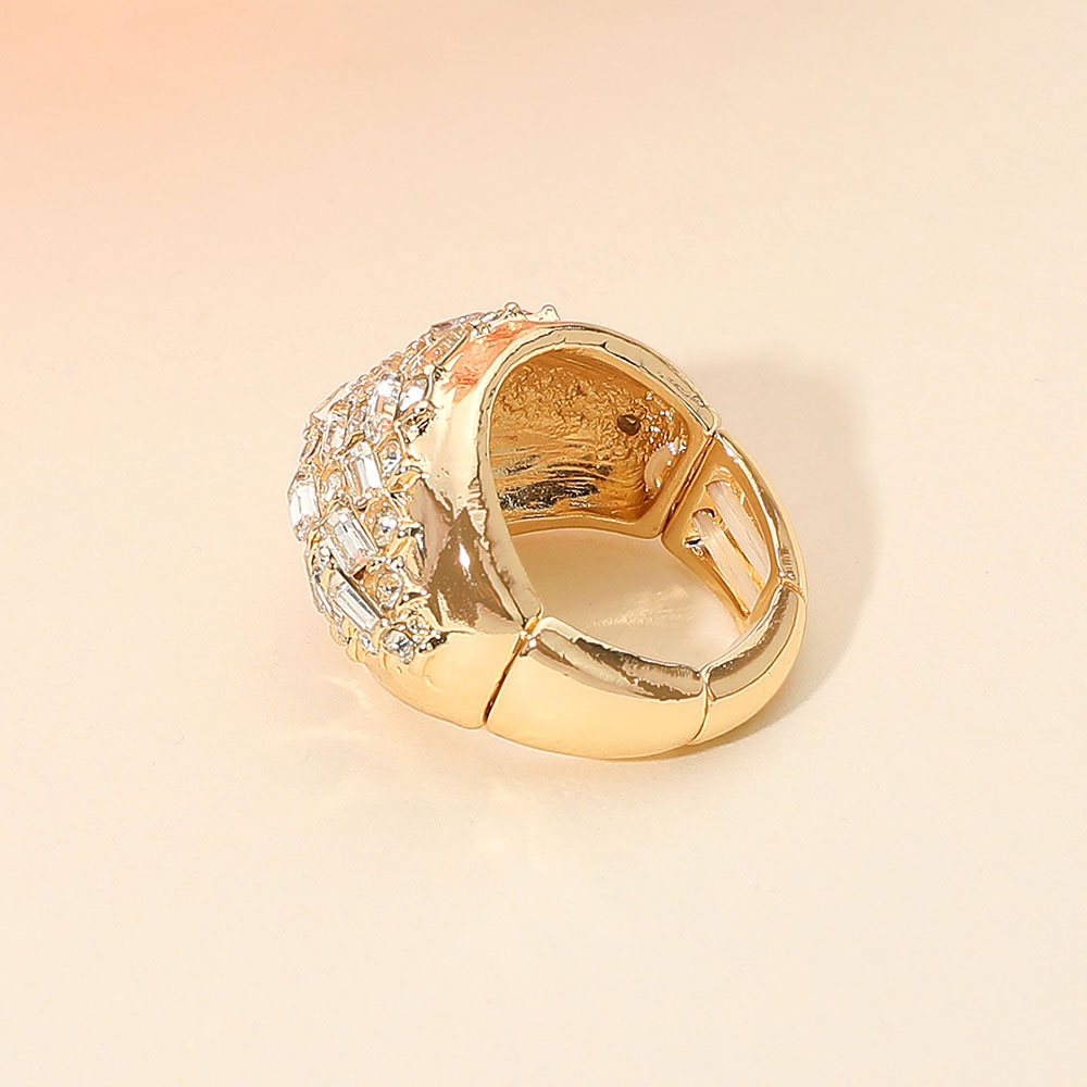 Checkered Pattern Baguette Stone Embellished Chunky Stretch Ring