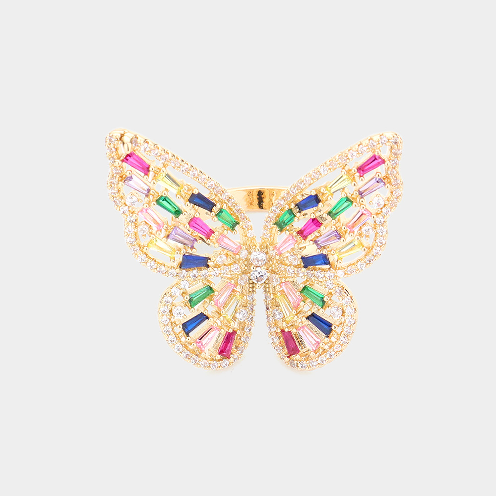 Floral Pattern Enamel Butterfly Pendant Necklace