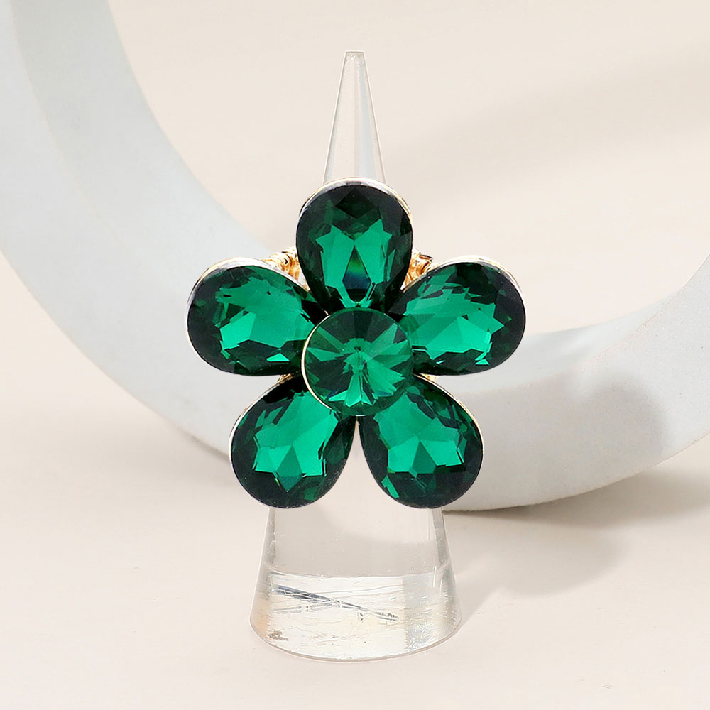 • Elegant flower-shaped statement ring featuring a dazzling faceted petal design that catches the light beautifully. Perfect for adding a bold, eye-catching accent to any outfit, this gem-inspired accessory enhances your style with its unique shape and sparkling radiance.