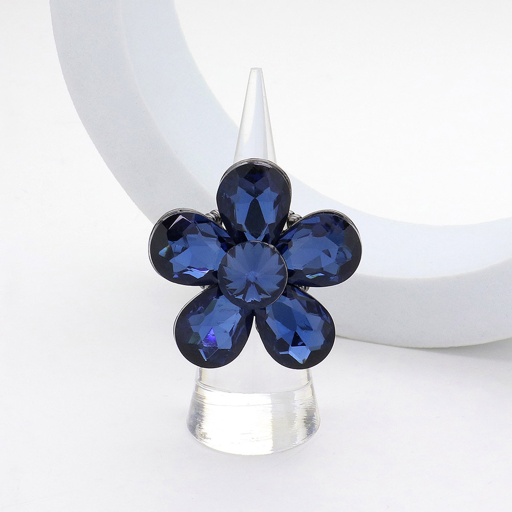 • Elegant flower-shaped statement ring featuring a dazzling faceted petal design that catches the light beautifully. Perfect for adding a bold, eye-catching accent to any outfit, this gem-inspired accessory enhances your style with its unique shape and sparkling radiance.