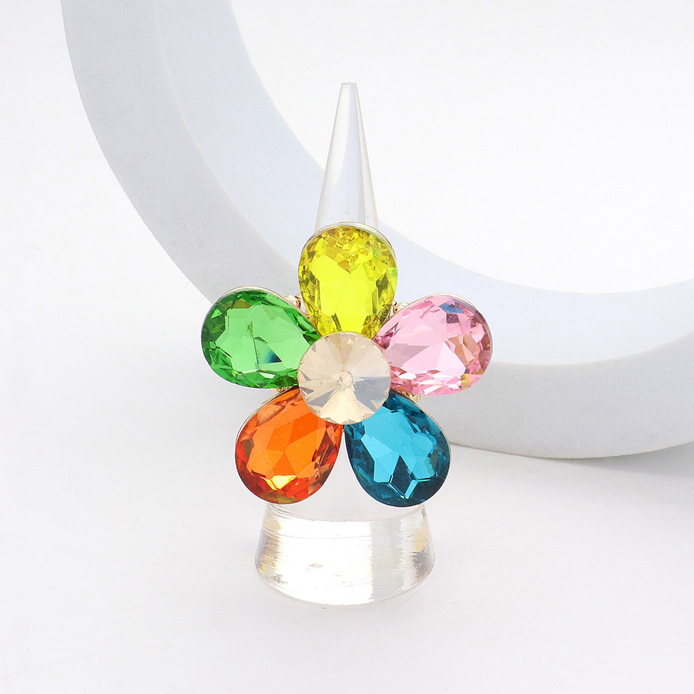• Elegant flower-shaped statement ring featuring a dazzling faceted petal design that catches the light beautifully. Perfect for adding a bold, eye-catching accent to any outfit, this gem-inspired accessory enhances your style with its unique shape and sparkling radiance.