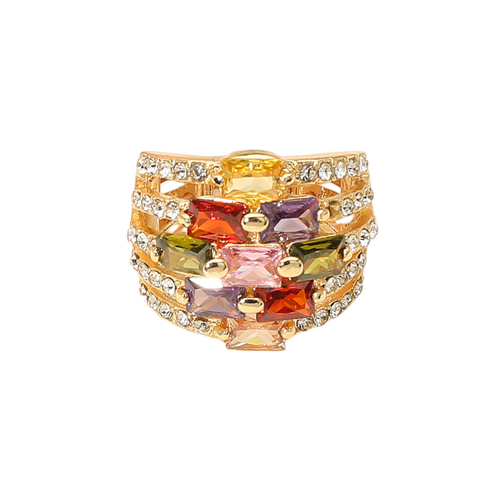 • This geometric crystal stretch ring showcases a bold multi-row design accented with radiant stones for a modern, statement-making appeal. Its flexible fit ensures comfort while adding a luxurious sparkle that enhances both evening ensembles and chic everyday outfits.