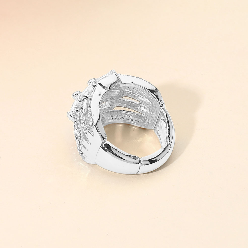 Details • Size : 0.8" H • Stretchable • This geometric crystal stretch ring showcases a bold multi-row design accented with radiant stones for a modern, statement-making appeal. Its flexible fit ensures comfort while adding a luxurious sparkle that enhances both evening ensembles and chic everyday outfits. • Lead and Nickel Compliant