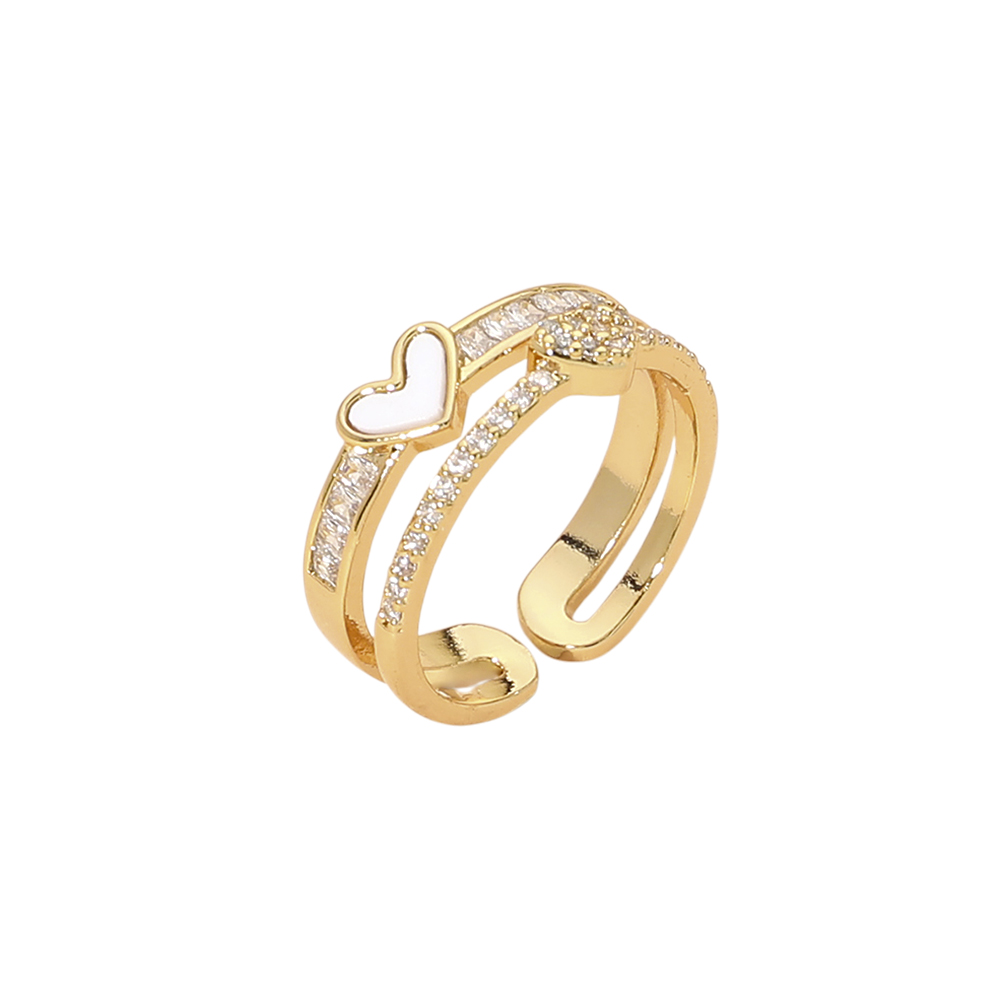 Gold Plated Mother of Pearl Heart Accent CZ Pave Double Band Adjustable Ring Gold Plated Mother of Pearl Heart Accent CZ Pave Double Band Adjustable Ring
