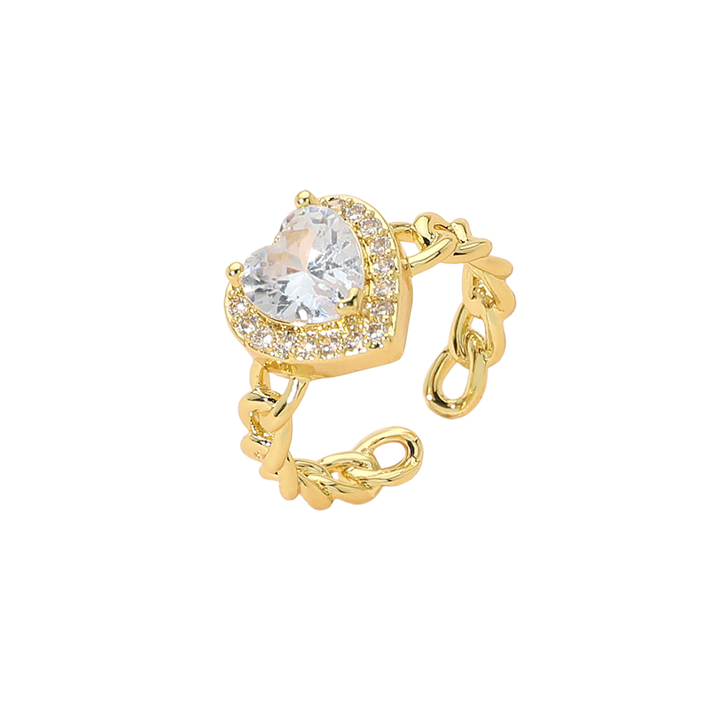 Heart CZ Stone Accent Adjustable Chain Ring Heart CZ Stone Accent Adjustable Chain Ring
