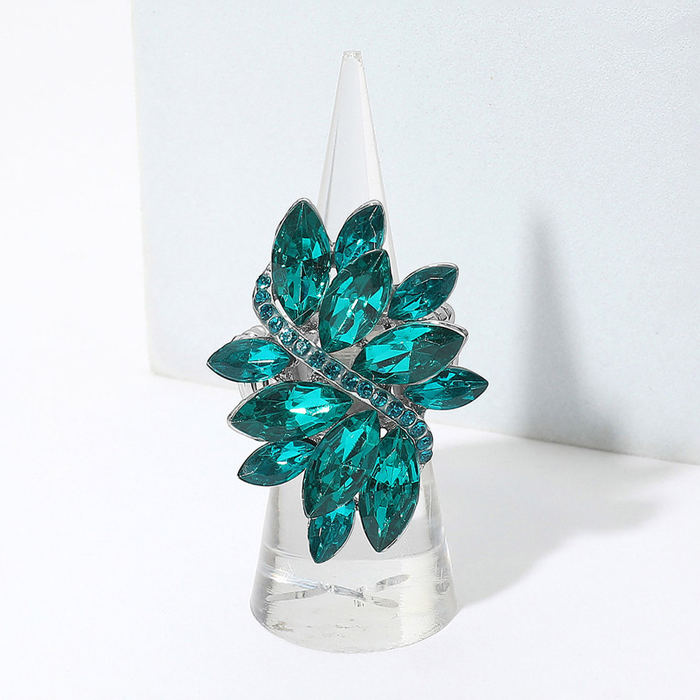 Details • Size : 1" X 1.5" • Stretchable • Shine bright with a statement cocktail ring designed in a striking crystal leaf motif. Featuring multi-faceted stones and dazzling sparkle, this glamorous accessory is perfect for parties, special occasions, or elevating everyday outfits with bold elegance.