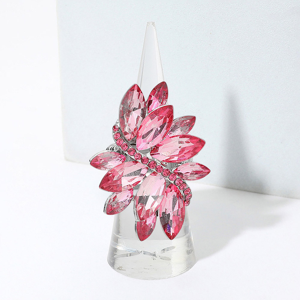 • Shine bright with a statement cocktail ring designed in a striking crystal leaf motif. Featuring multi-faceted stones and dazzling sparkle, this glamorous accessory is perfect for parties, special occasions, or elevating everyday outfits with bold elegance.