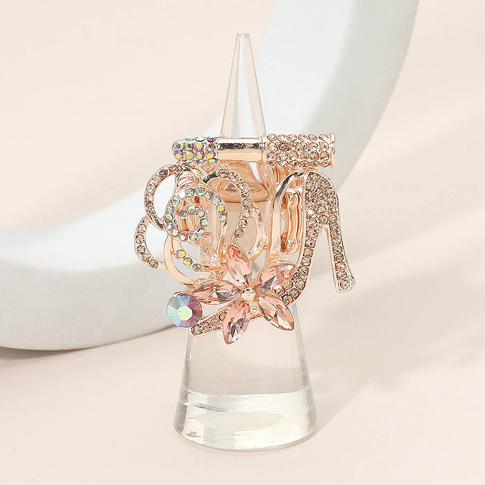 Rhinestone Pave High Heel Flower Lipstick Stretch Ring Rhinestone Pave High Heel Flower Lipstick Stretch Ring
