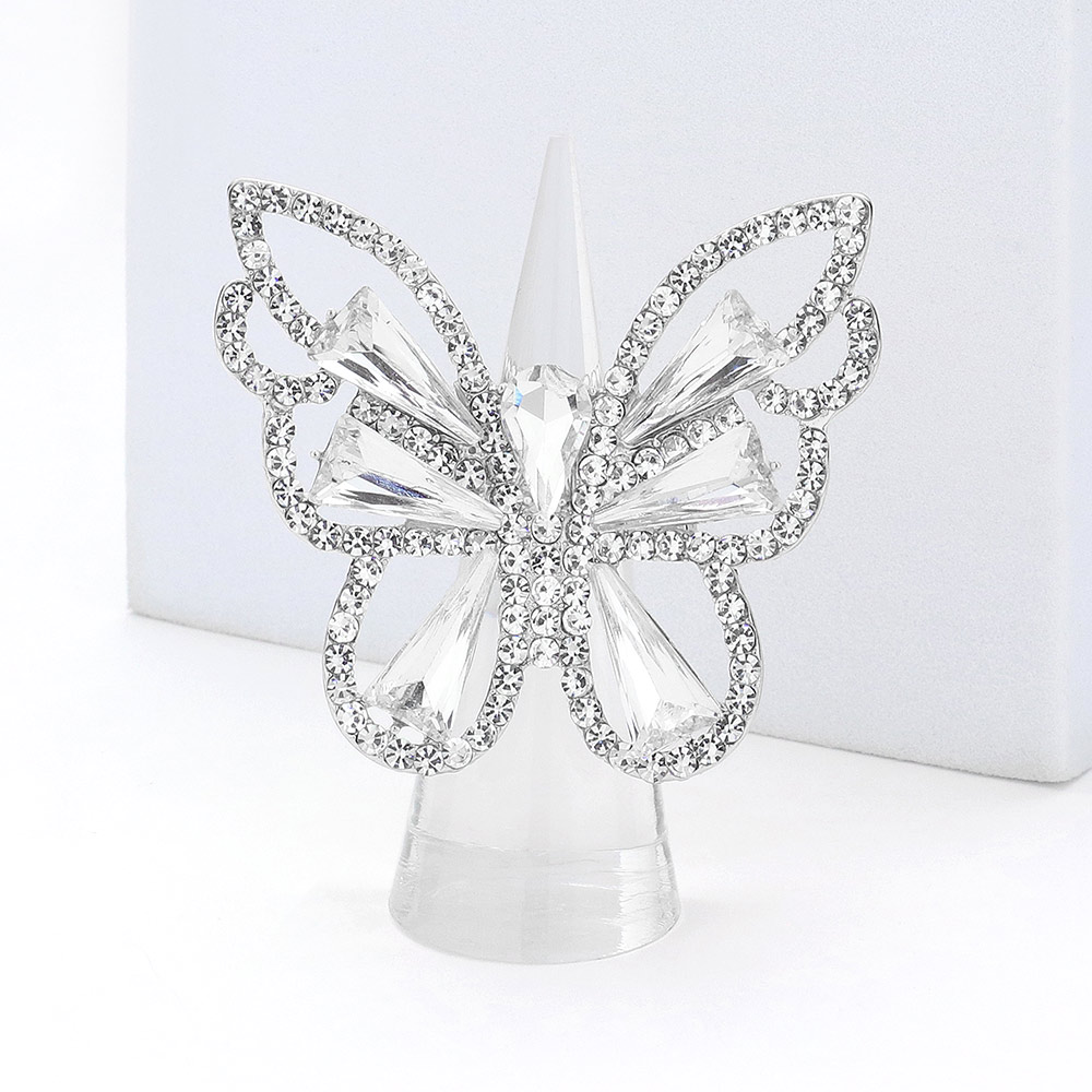 Rhinestone Embellished Butterfly Pendant Accented Tennis Chain Evening Necklace